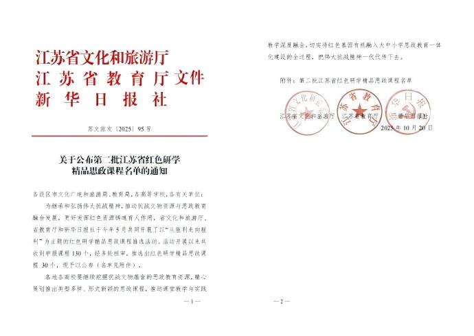 公司获评第二批江苏省红色研学精品思政课程